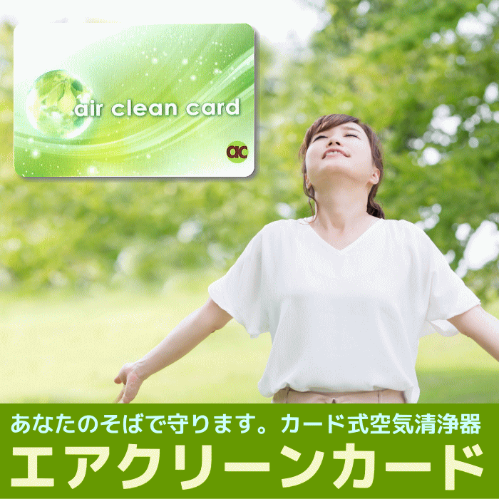 エアークリーンカードは電気もいらないカード型携帯空気清浄機です。身につけるだけで、風邪やインフルエンザを予防してくれて、花粉の症状を緩和してくれます。お守りのようにあなたを守ってくれるエアークリーンカードを携帯することで、ウイルスや花粉の脅威を緩和させましょう。私自身も仕事で人と接する機会が多いので、いつも携帯しています。